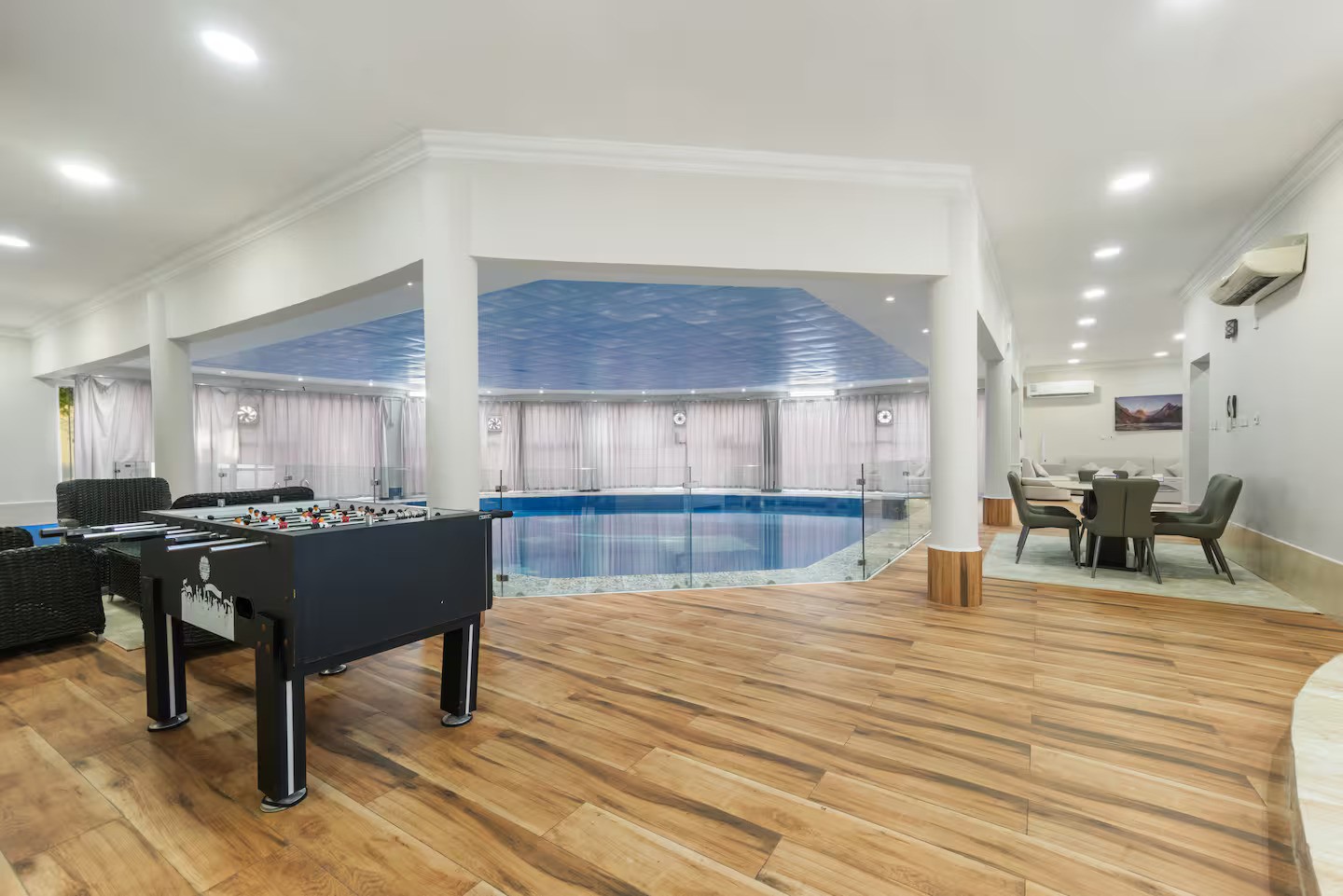 Dreams Gate Villa Rest House 1 is a charming and cozy 3-bedroom retreat, perfect for family gatherings and get-togethers. It offers a private football field, indoor swimming pools, a playground, and an outdoor BBQ grill. Kids will love visiting the small animals on-site, including chickens and even an emu! With no restrictions, itβs your perfect escape to relax, have fun, and enjoy quality time with your loved ones.