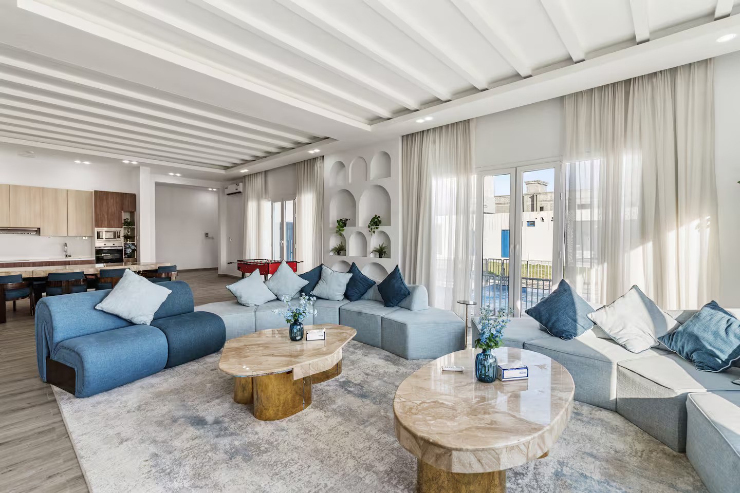 Dreams Gate Villa Rest House 3 is a beautiful 7-bedroom retreat, perfect for large families and special celebrations. It features a private football field, two outdoor pools, a kids’ play area by the pools and indoors, plus an outdoor BBQ grill and a cozy campfire spot. With its spacious layout, it’s perfect for family meals, gatherings, and events. With no restrictions, it’s the ideal place to relax, celebrate, and make unforgettable memories with your loved ones.