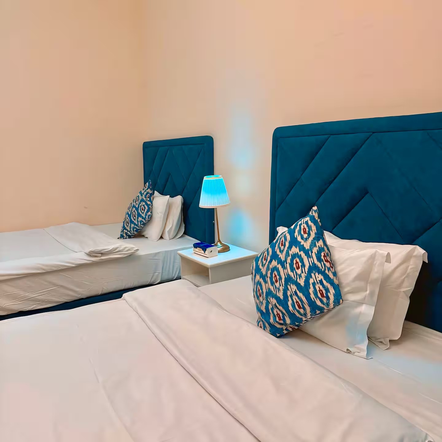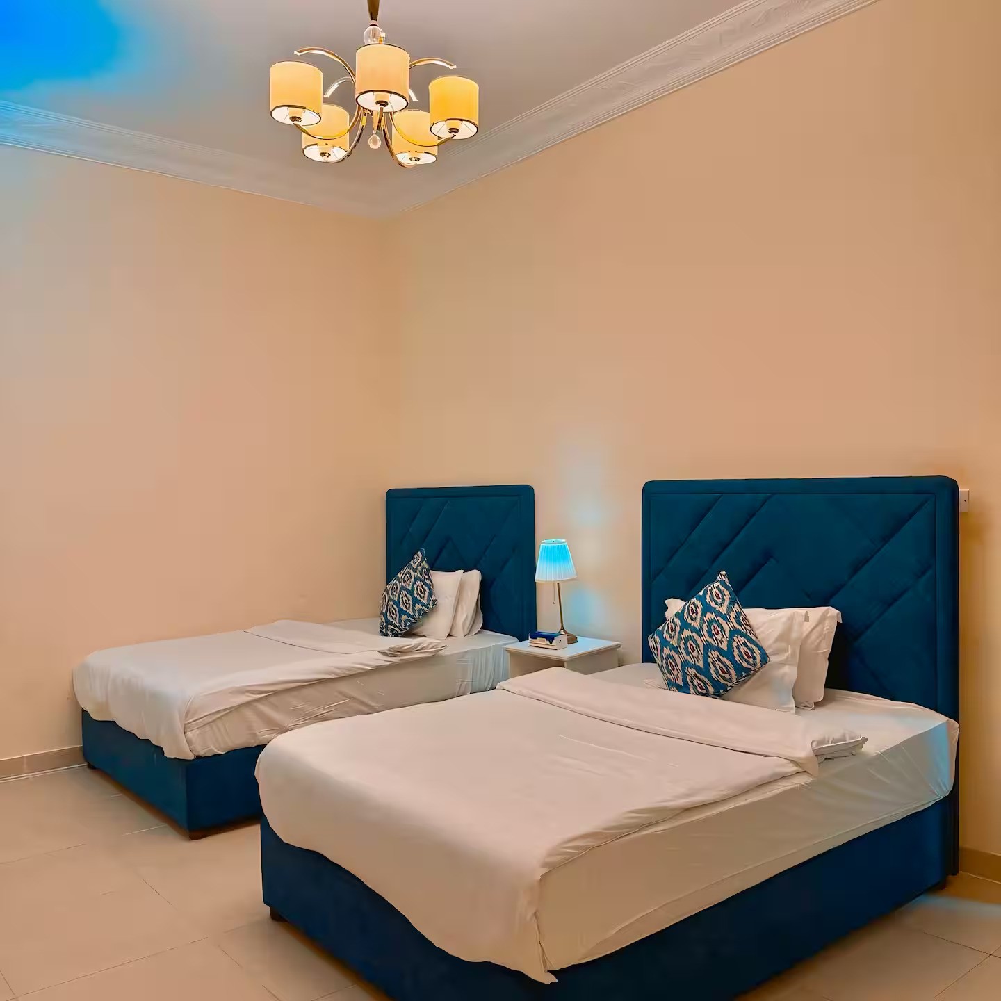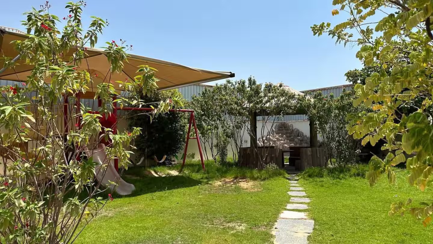 This villa offers 4 bedrooms, a spacious living area, a private indoor pool, and a separate kids room. Outside, you’ll find a garden with a gazebo, a BBQ area, a playground, and a majlis for relaxing and talking. There’s also a billiards table for fun with family and friends. A calm, comfortable space made for easy gatherings.