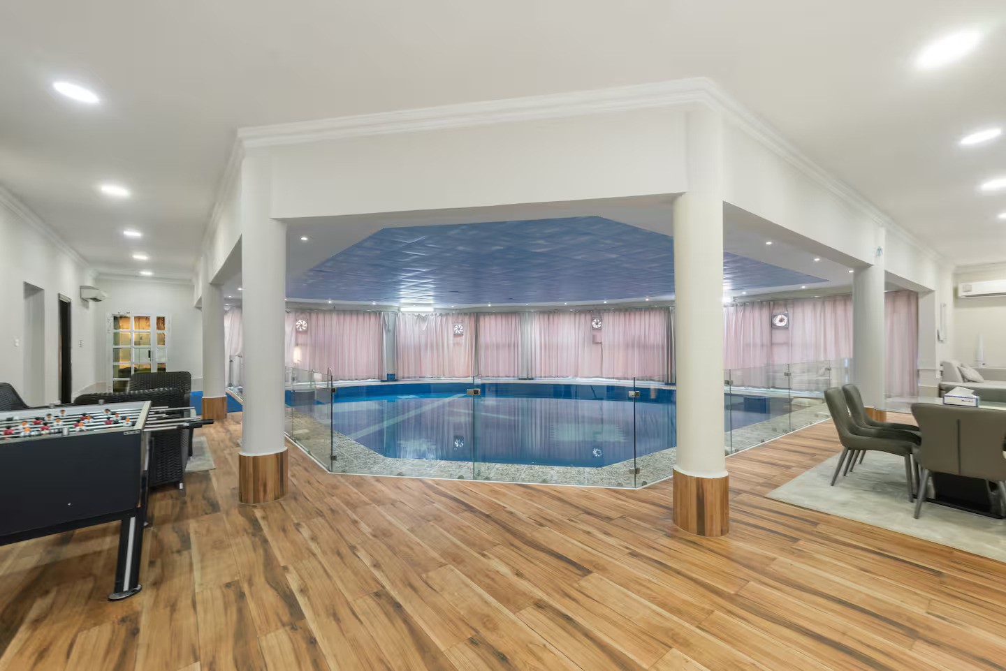 Dreams Gate Villa Rest House 1 is a charming and cozy 3-bedroom retreat, perfect for family gatherings and get-togethers. It offers a private football field, indoor swimming pools, a playground, and an outdoor BBQ grill. Kids will love visiting the small animals on-site, including chickens and even an emu! With no restrictions, itβs your perfect escape to relax, have fun, and enjoy quality time with your loved ones.