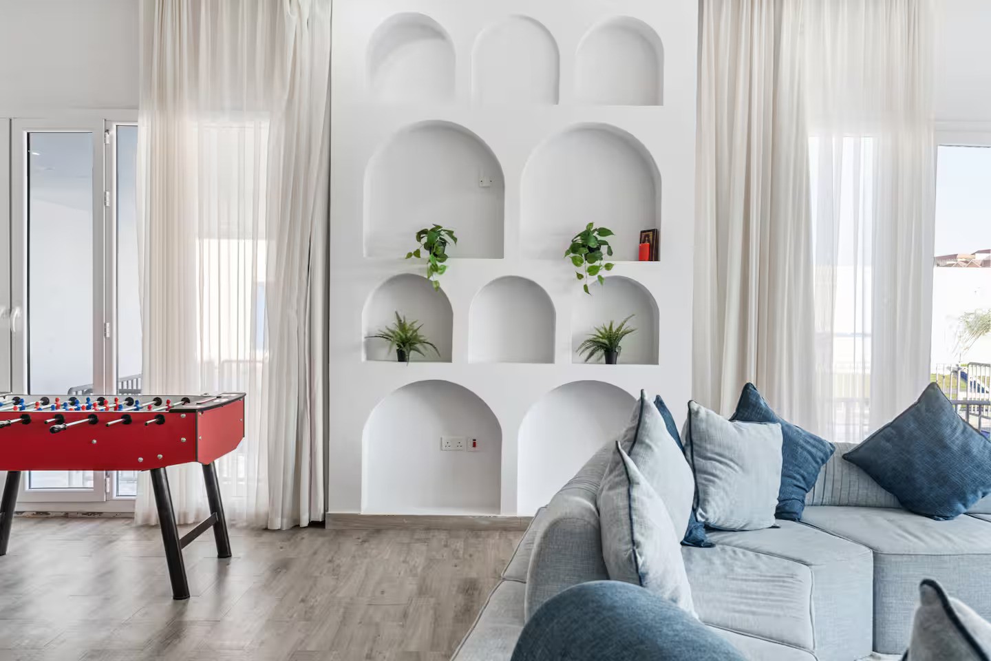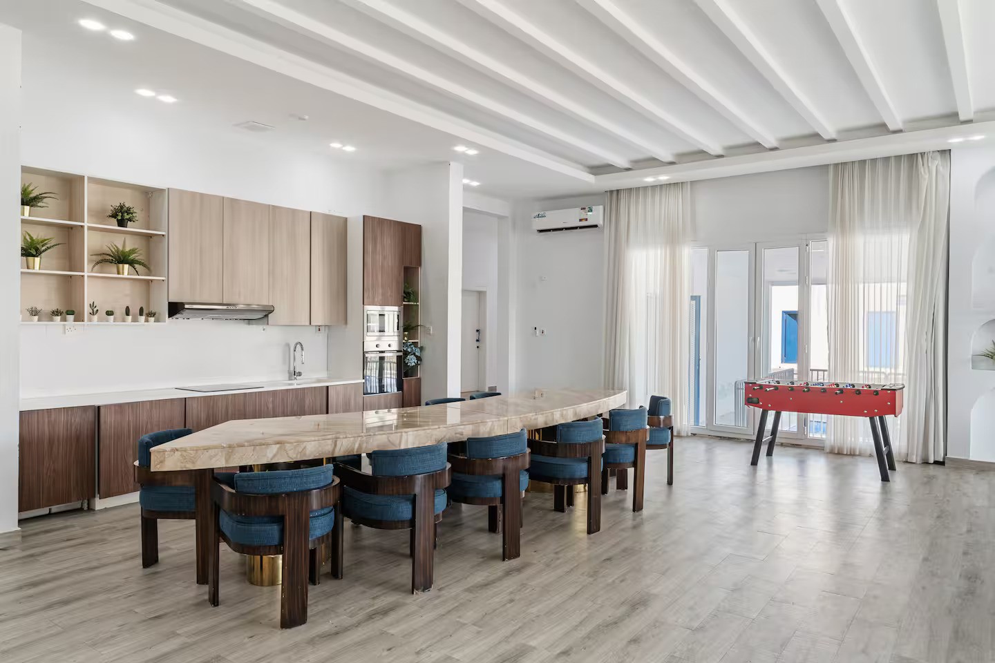 Dreams Gate Villa Rest House 3 is a beautiful 7-bedroom retreat, perfect for large families and special celebrations. It features a private football field, two outdoor pools, a kids’ play area by the pools and indoors, plus an outdoor BBQ grill and a cozy campfire spot. With its spacious layout, it’s perfect for family meals, gatherings, and events. With no restrictions, it’s the ideal place to relax, celebrate, and make unforgettable memories with your loved ones.