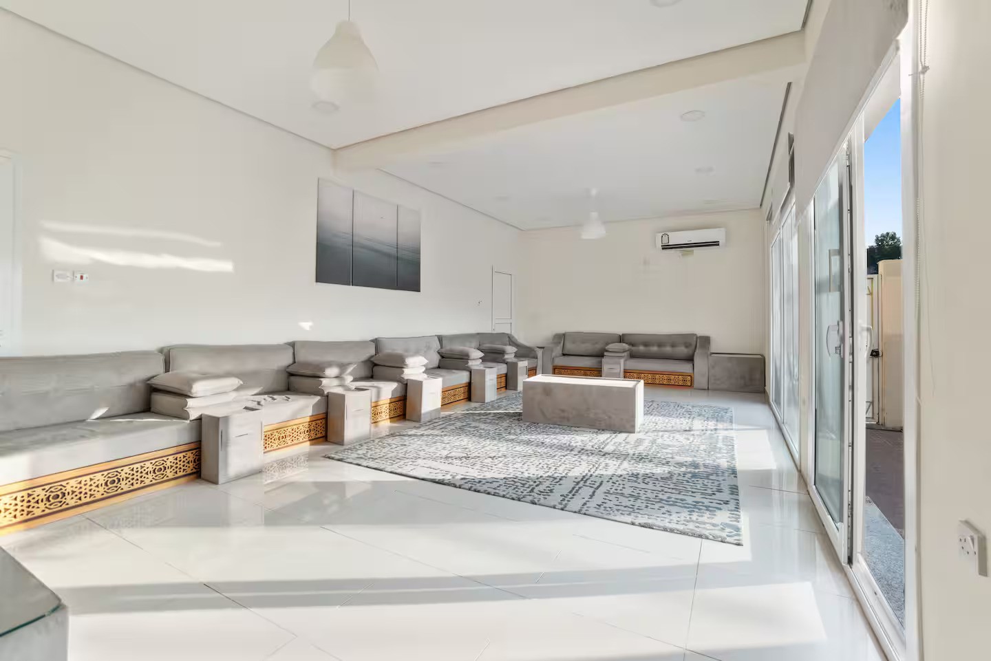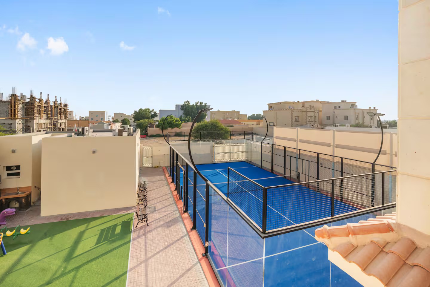 Dreams Gate Villa Rest house 6 is a luxurious 6-bedroom retreat perfect for gatherings. Enjoy a private padel court, exclusive majlis, two swimming pools for adults and kids, a playground, and an outdoor BBQ grill. The spacious setting is ideal for family meals and celebrations. With no restrictions, itβs your ultimate escape to relax, celebrate, and create unforgettable memories with loved ones.