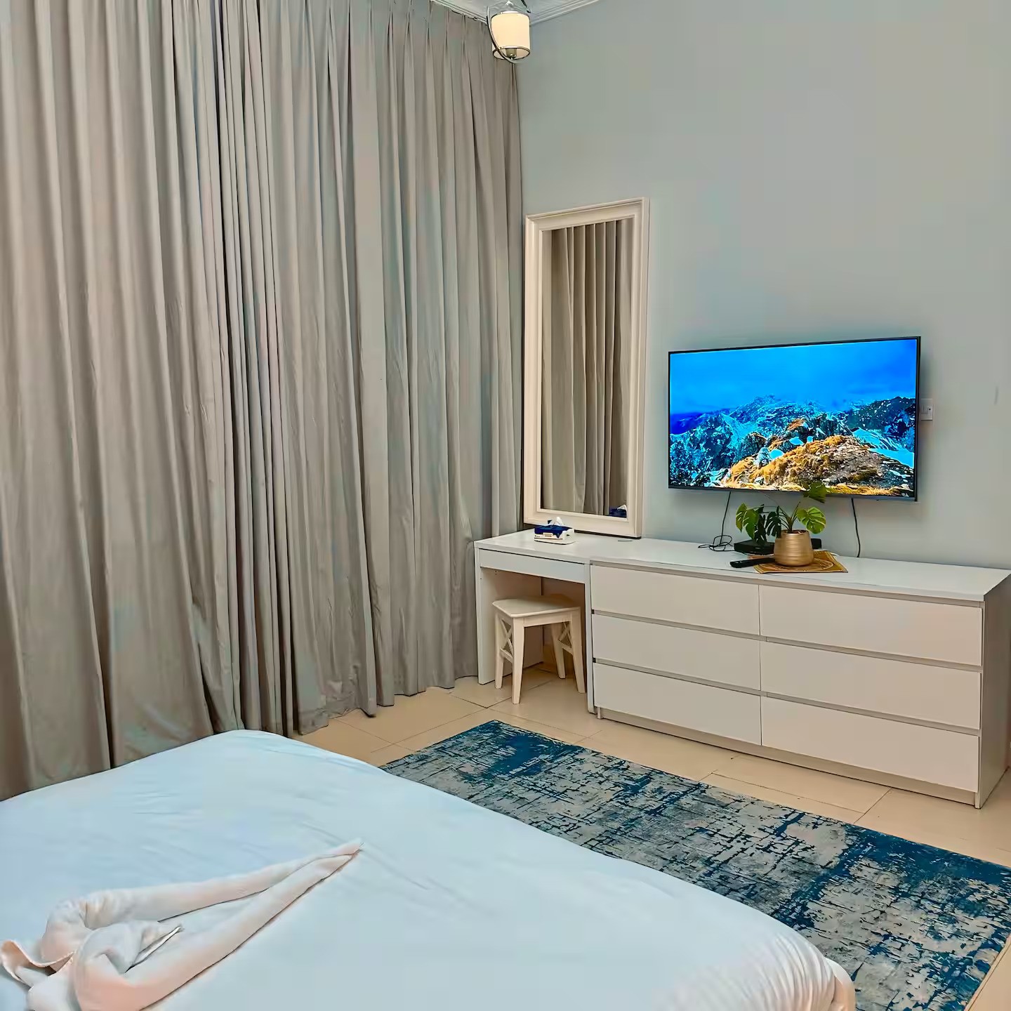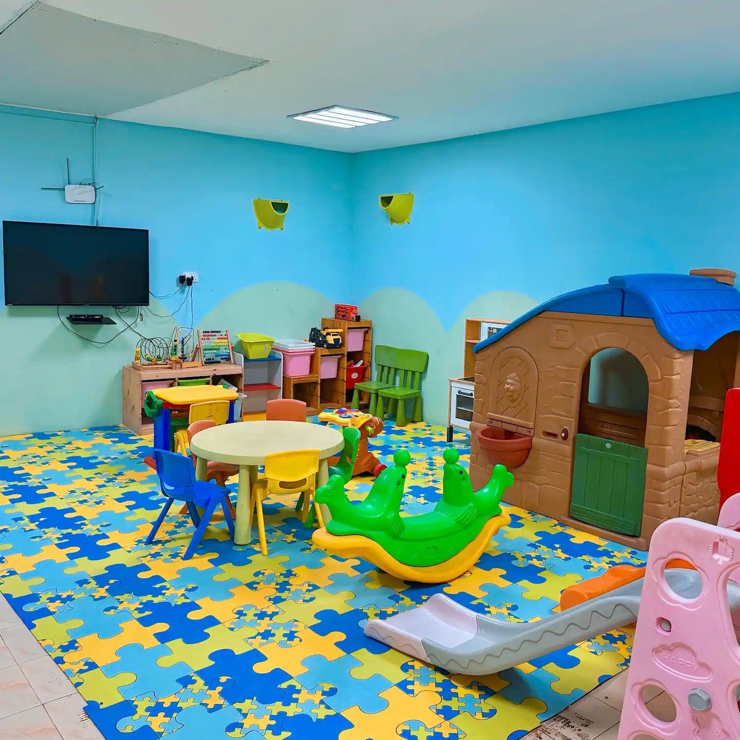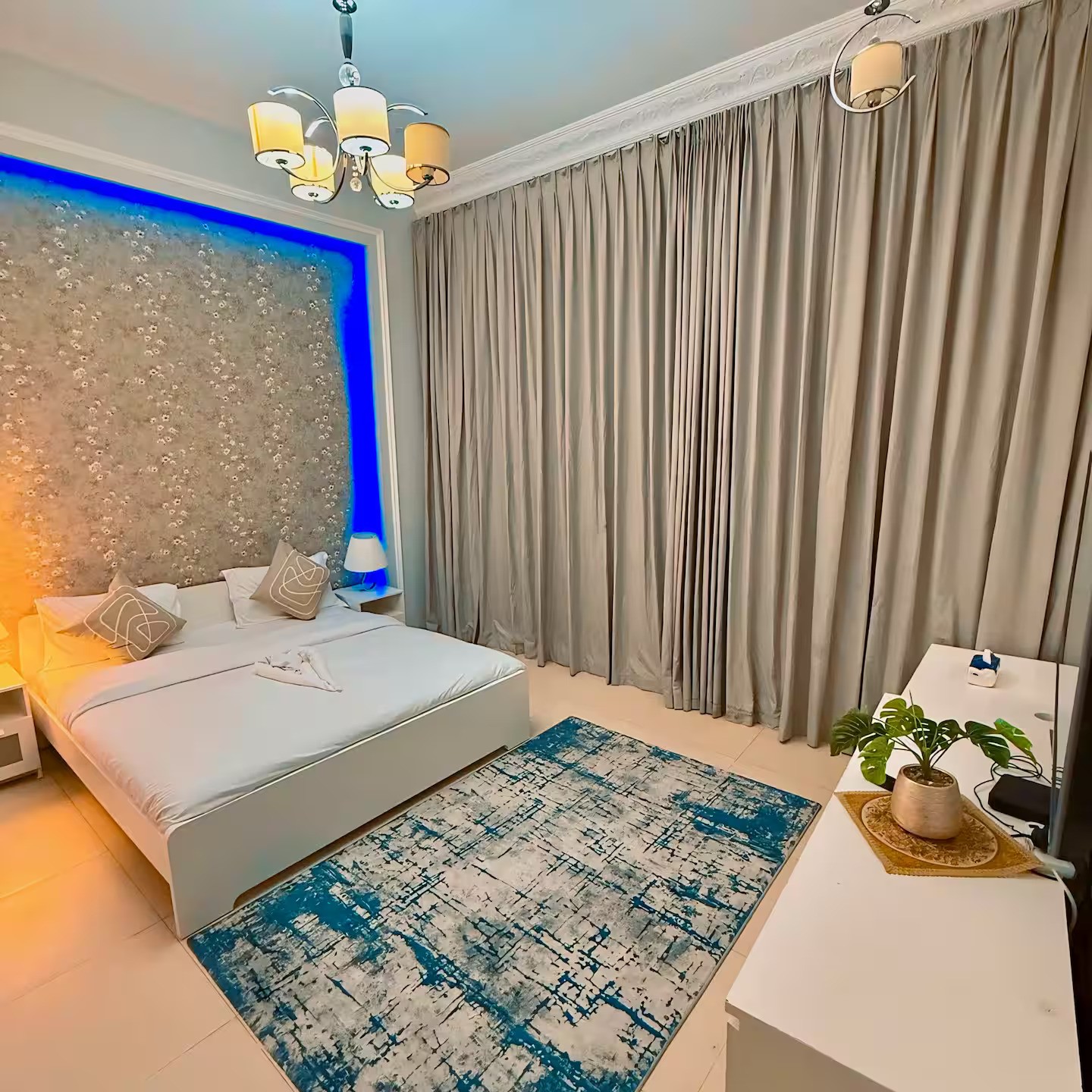 This villa offers 4 bedrooms, a spacious living area, a private indoor pool, and a separate kids room. Outside, you’ll find a garden with a gazebo, a BBQ area, a playground, and a majlis for relaxing and talking. There’s also a billiards table for fun with family and friends. A calm, comfortable space made for easy gatherings.